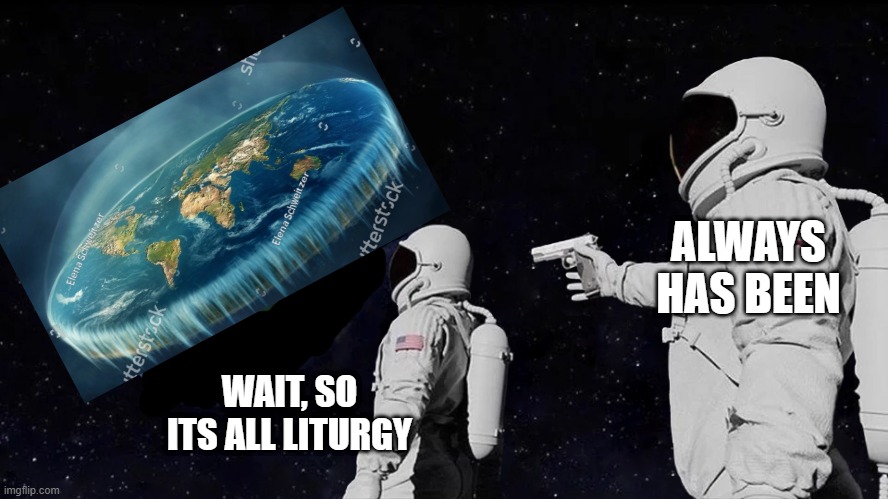 [At least the Flat-Earthers have conventions where they meet up in real life. I’d love it if they came to Church, but I digress]